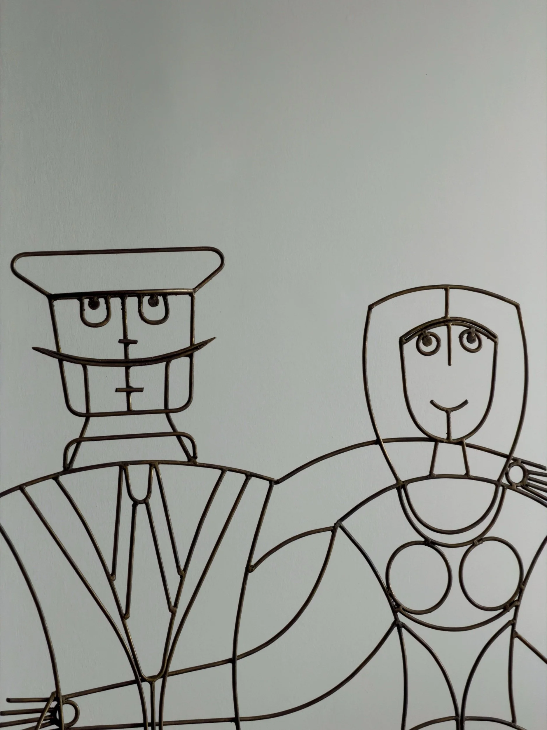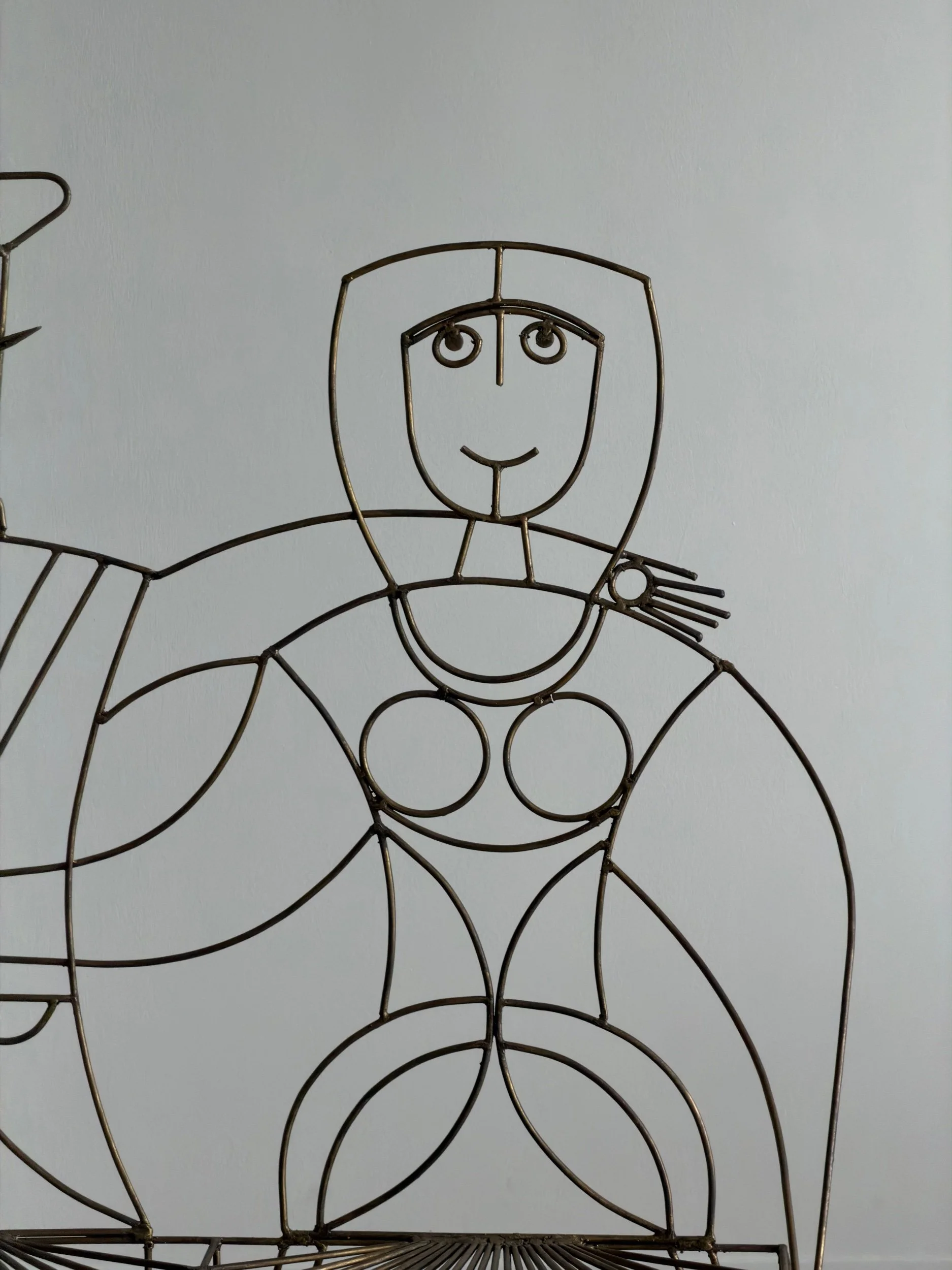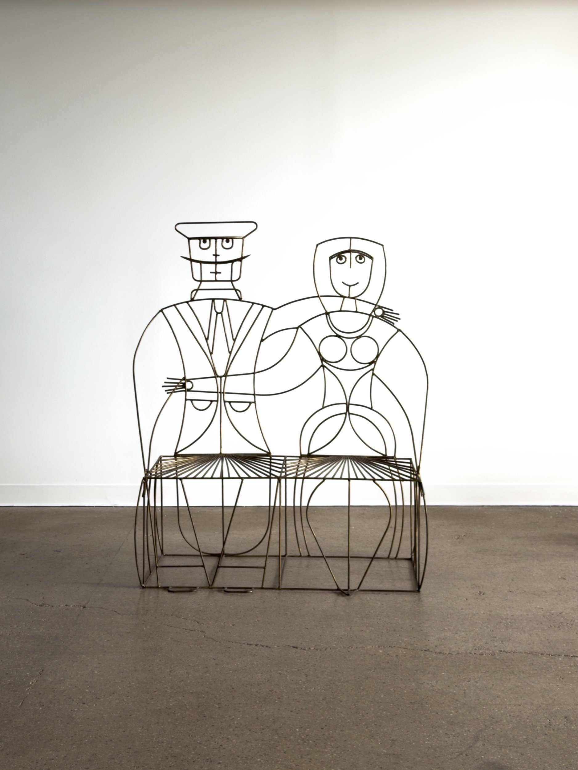 USA, 1960s. Sculptural steel wire settee with a gold tone finish.