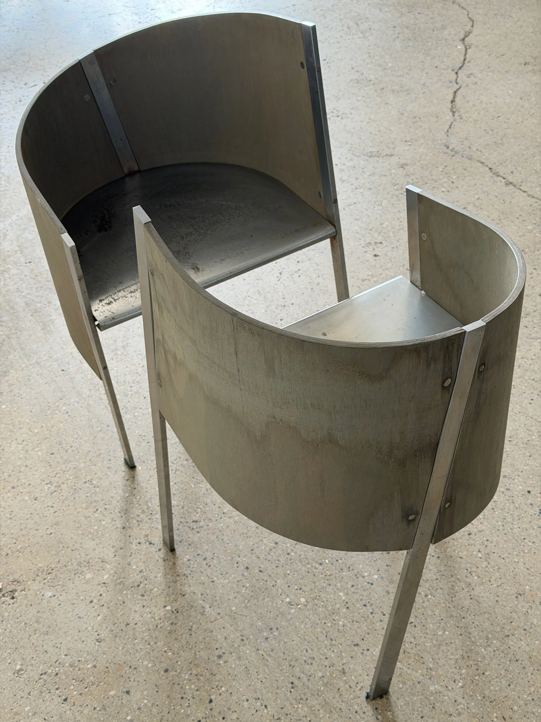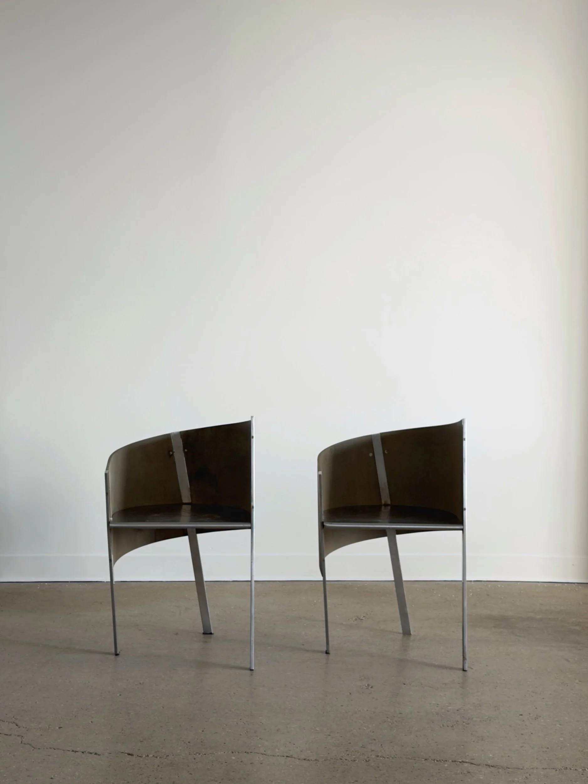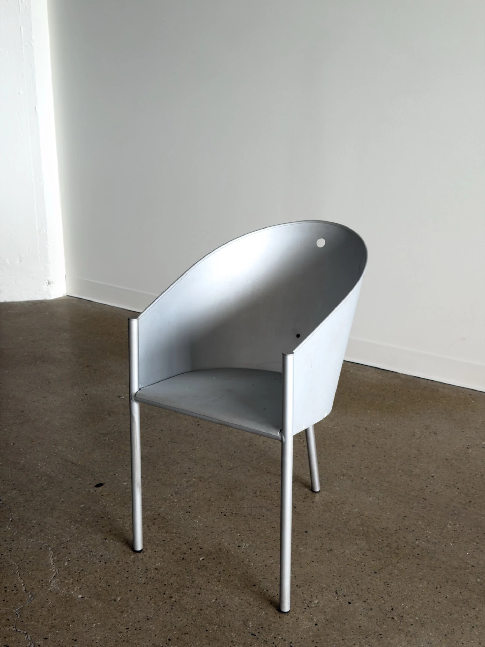 Italy, 1987. Aluminum chair with riveted backrest and seat