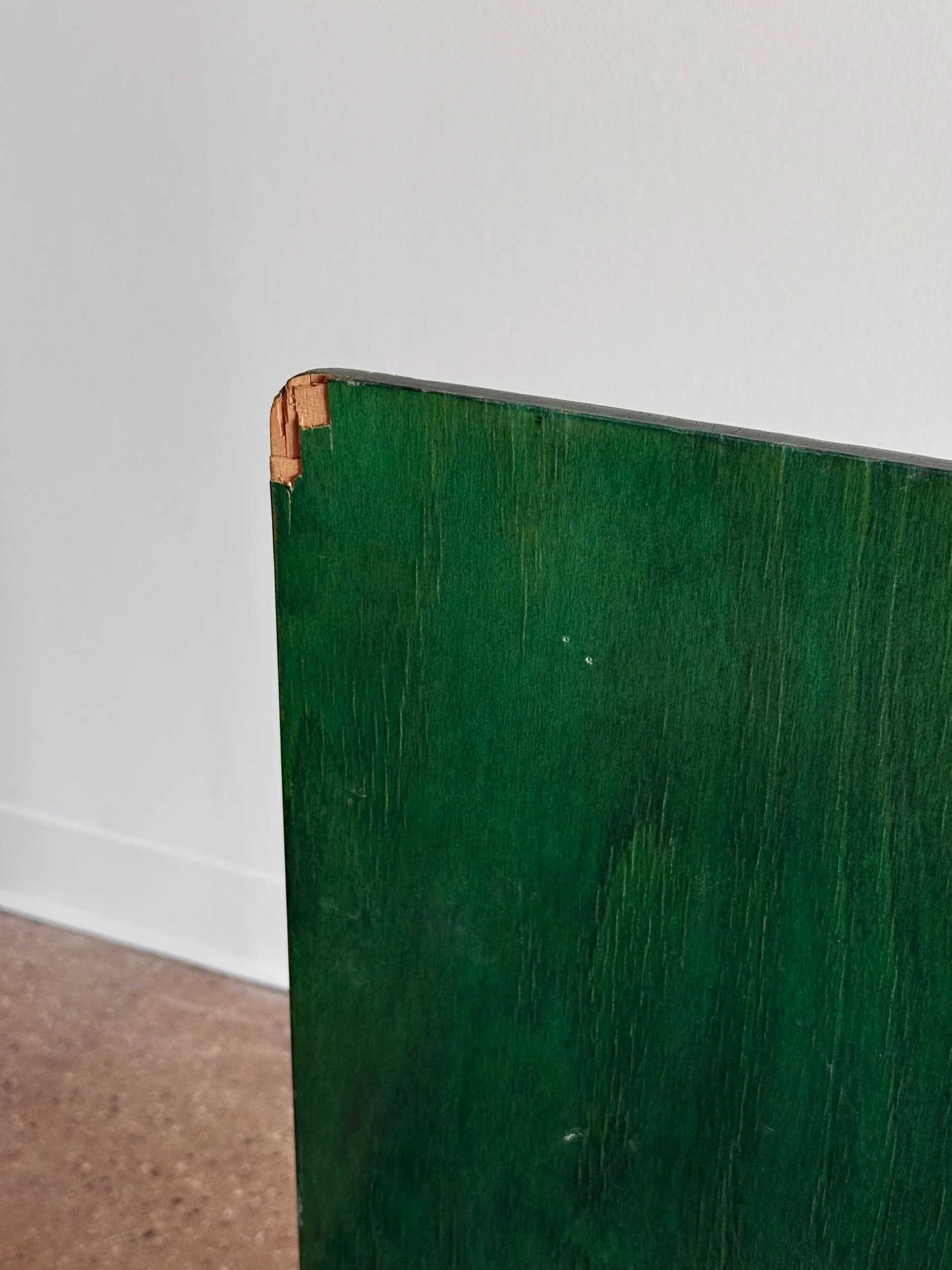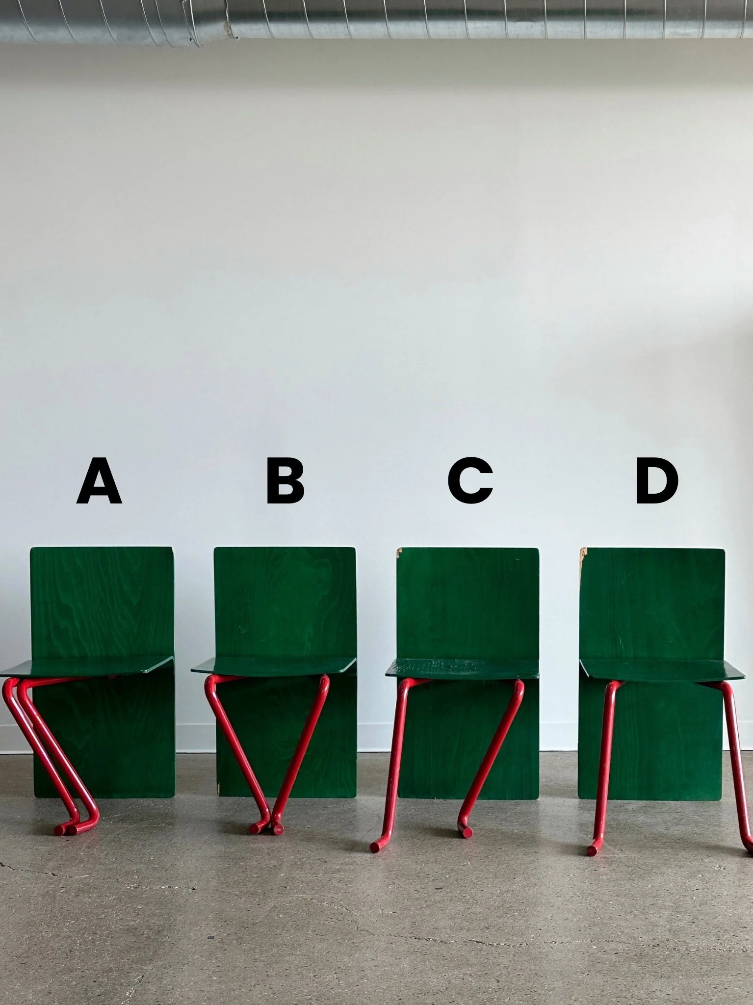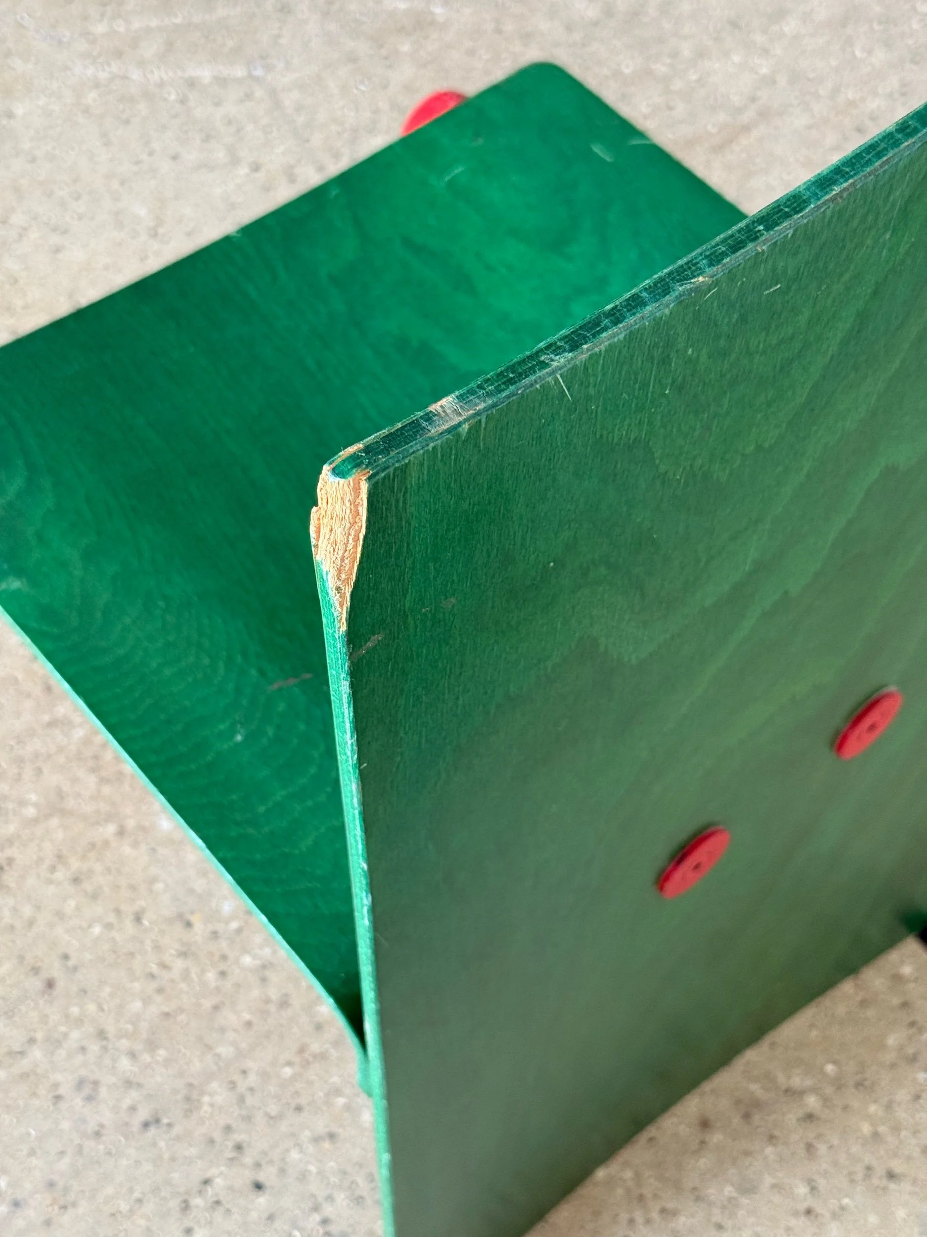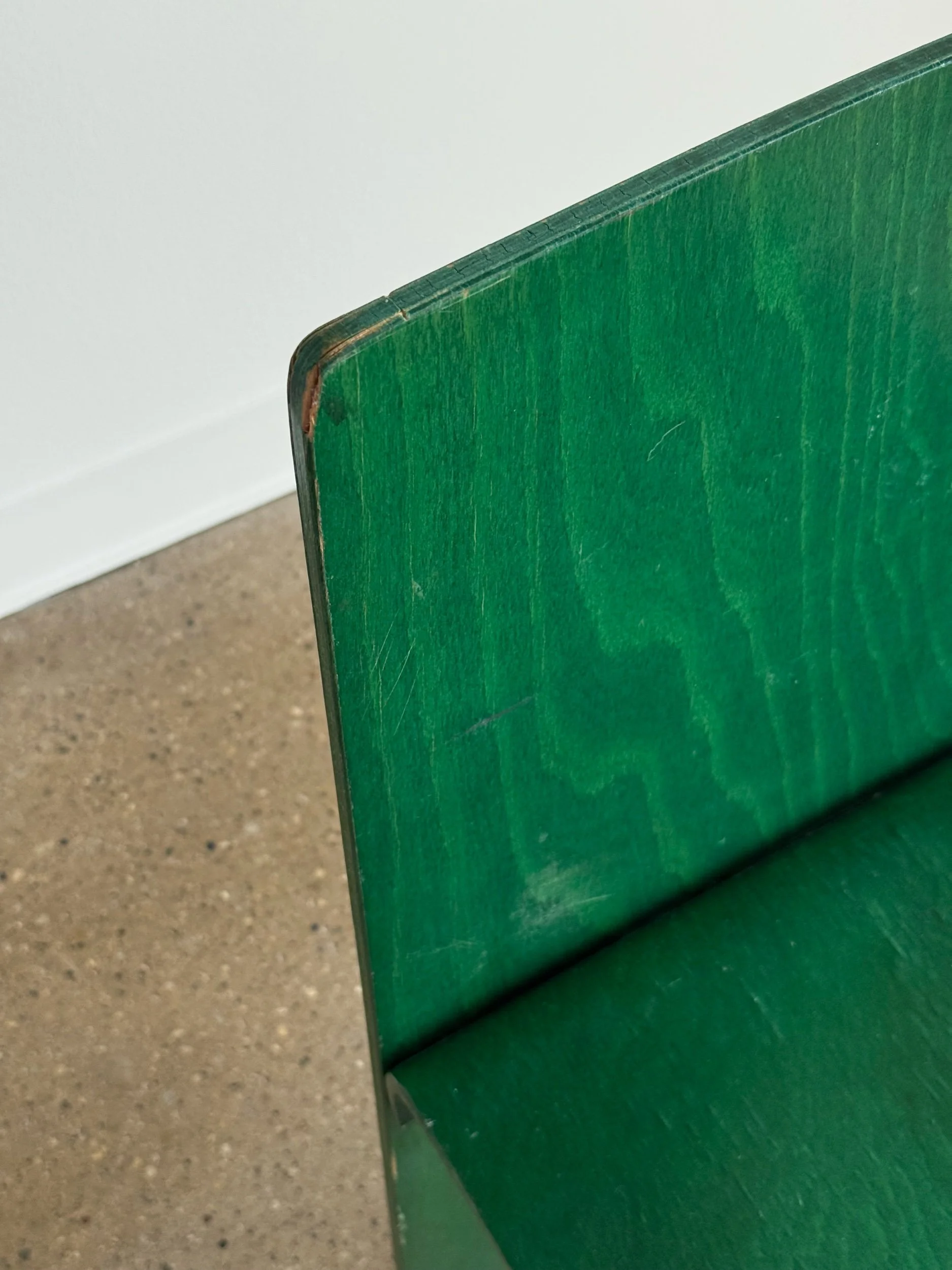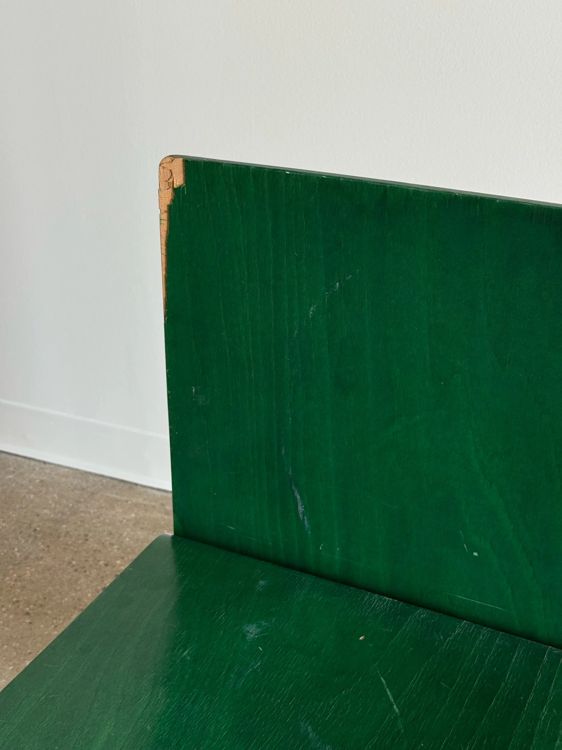 Switzerland, 1986. Green-dyed plywood with red lacquered tubular steel legs. Four of seven leg varieties produced. Priced individually, see last photo for style ID.