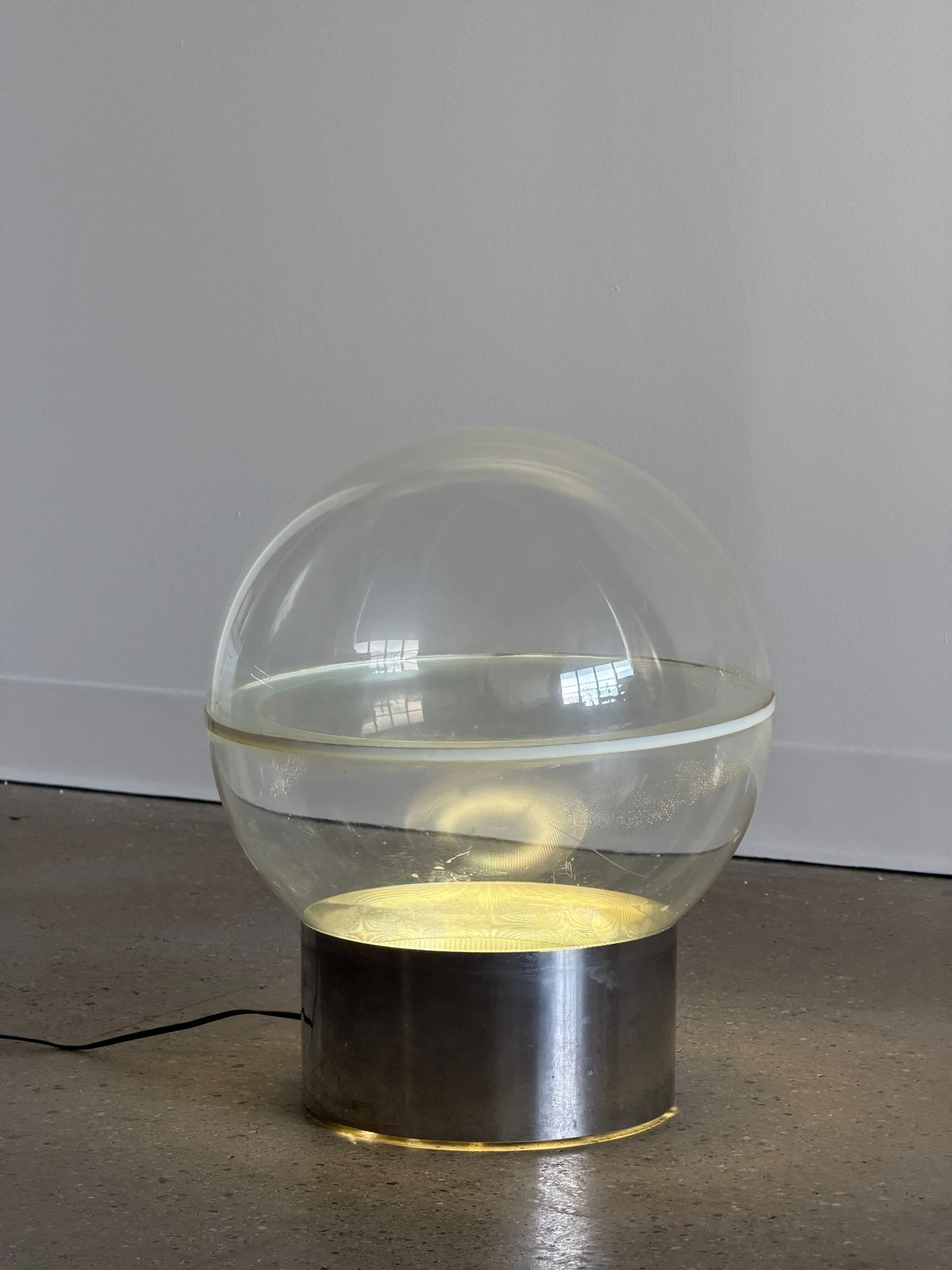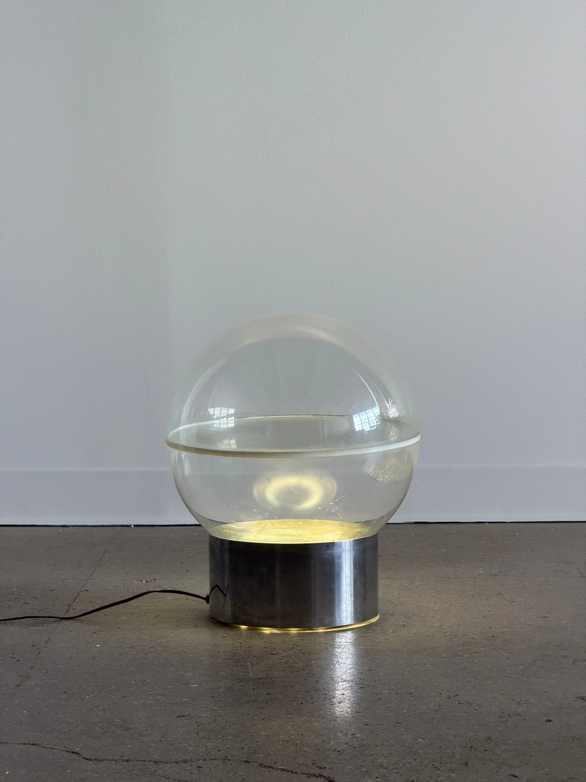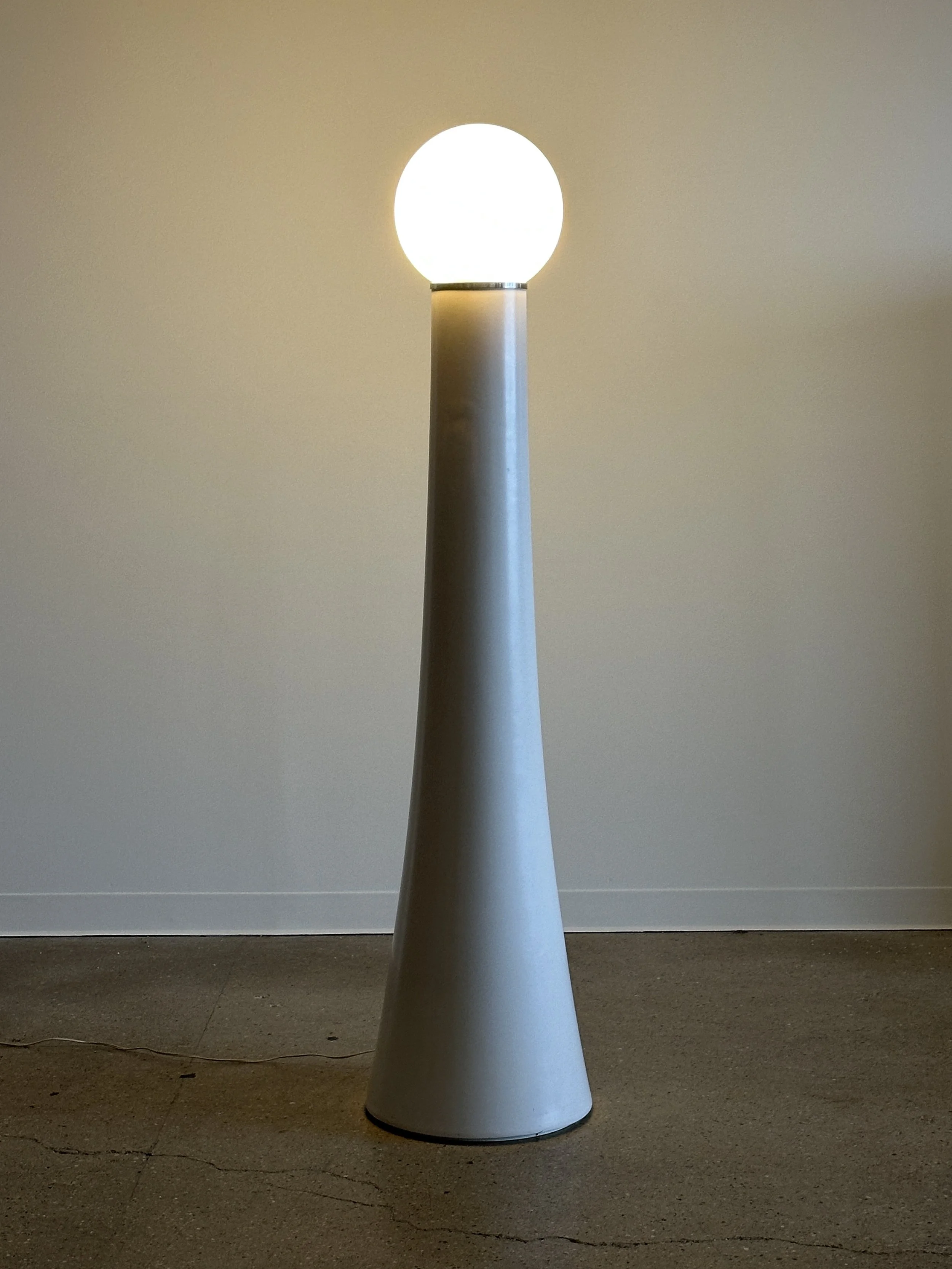 Italy, 1971. Adjustable chrome-plated metal shades with brushed steel stem on a cast iron base.